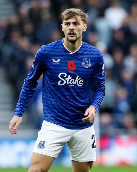 Kiernan Dewsbury-Hall of Everton during the Premier League match Everton vs Fulham at Hill Dickinson Stadium, Liverpool, United Kingdom, 8th November 2025, Credit:Jorge Horsted/News Images / Avalon