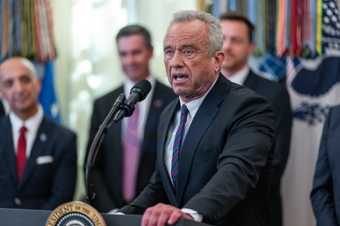 HHS Secretary Robert F. Kennedy, Jr. delivers remarks after President Donald Trump's announcement on lowering drug prices in the Oval Office, Thursday, November 6, 2025., Credit:Abe McNatt / Avalon