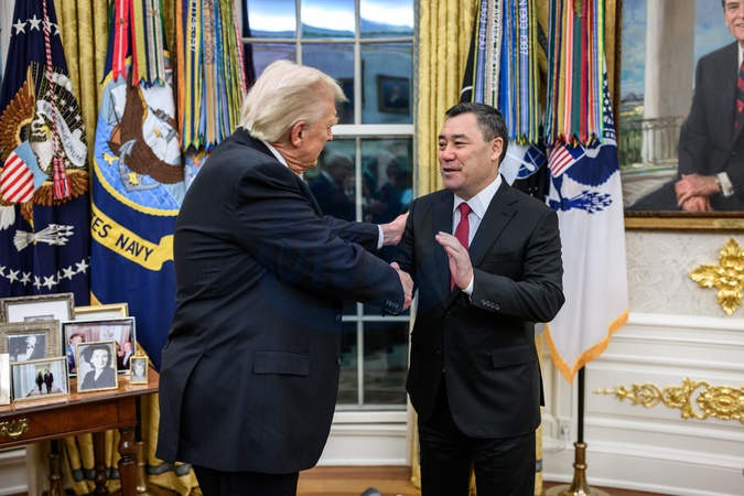 President Donald Trump meets with the President of the Kyrgyzstan Republic Sadyr Nurgojo uulu Japarov in the Oval Office before a dinner with other C5 Central Asian leaders, Thursday, November 6, 2025., Credit:Daniel Torok / Avalon