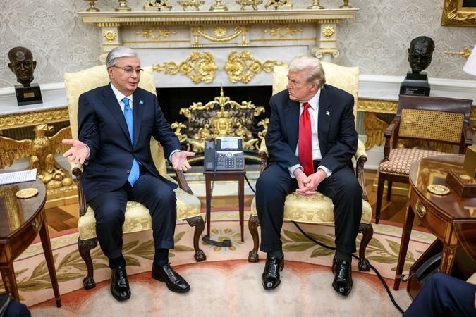 President Donald Trump meets with President of the Republic of Kazakhstan Kassym-Jomart Tokayev in the Oval Office before a dinner with other C5 Central Asian leaders, Thursday, November 6, 2025., Credit:Daniel Torok / Avalon