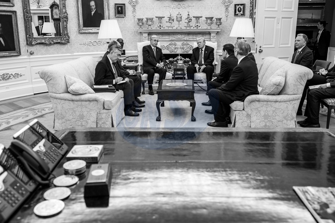 President Donald Trump meets with President of the Republic of Kazakhstan Kassym-Jomart Tokayev in the Oval Office before a dinner with other C5 Central Asian leaders, Thursday, November 6, 2025., Credit:Daniel Torok / Avalon