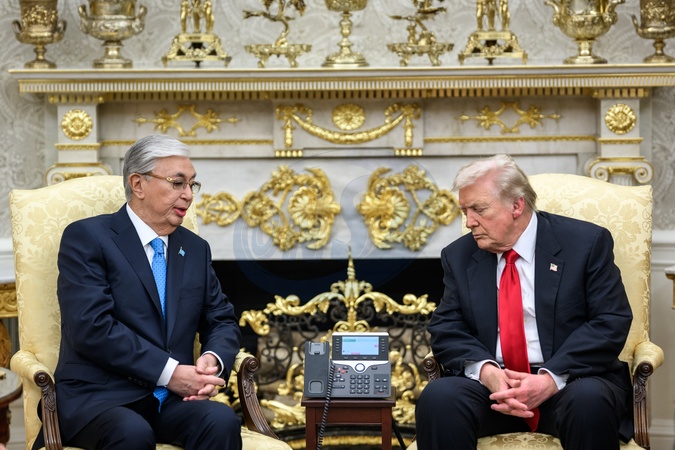 President Donald Trump meets with President of the Republic of Kazakhstan Kassym-Jomart Tokayev in the Oval Office before a dinner with other C5 Central Asian leaders, Thursday, November 6, 2025., Credit:Daniel Torok / Avalon