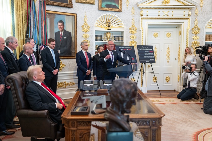 HHS Secretary Robert F. Kennedy, Jr. delivers remarks after President Donald Trump's announcement on lowering drug prices in the Oval Office, Thursday, November 6, 2025., Credit:Abe McNatt / Avalon