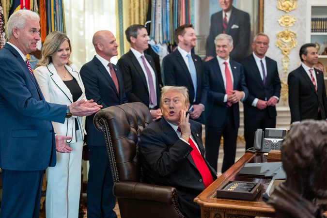 President Donald Trump makes an announcement on lowering drug prices alongside pharmaceutical representatives and Cabinet members in the Oval Office, Thursday, November 6, 2025., Credit:Abe McNatt / Avalon