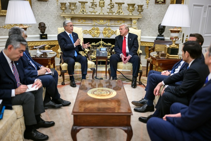 President Donald Trump meets with President of the Republic of Kazakhstan Kassym-Jomart Tokayev in the Oval Office before a dinner with other C5 Central Asian leaders, Thursday, November 6, 2025., Credit:Daniel Torok / Avalon
