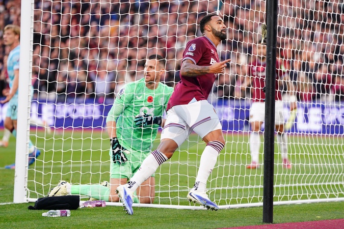 Callum Wilson of West Ham United celebrates equaliser during the Premier League match West Ham United vs Burnley at London Stadium, London, United Kingdom, 8th November 2025, Credit:Harvey Murphy/News Images / Avalon