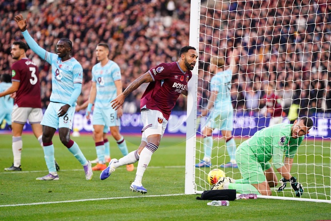 Callum Wilson of West Ham United scores to make it 1-1 during the Premier League match West Ham United vs Burnley at London Stadium, London, United Kingdom, 8th November 2025, Credit:Harvey Murphy/News Images / Avalon