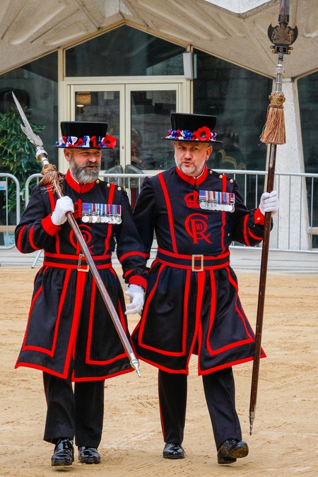 London, UK. 08th Nov, 2025. Yeoman warders (Beefeaters) at the early morning preparations around the Guildhall. The three-mile long procession showcases tradition, pageantry, as well as the modern City of London with military bands, livery companies, community groups, charities and others, featuring around 7, 000 participants, 200 horses and over 50 decorated floats. For the first time in its 800 year history, the procession is called Lady Mayor's Show as the new Lady Mayor, Dame Susan Langley DBE, is welcomed to the City of London., Credit:Imageplotter / Avalon