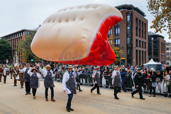 London, UK. 08th Nov, 2025. The Worshipful Company of Butchers with their giant rack of ribs. The three-mile long procession showcases tradition, pageantry, as well as the modern City of London with military bands, livery companies, community groups, charities and others, featuring around 7, 000 participants, 200 horses and over 50 decorated floats. For the first time in its 800 year history, the procession is called Lady Mayor's Show as the new Lady Mayor, Dame Susan Langley DBE, is welcomed to the City of London., Credit:Imageplotter / Avalon