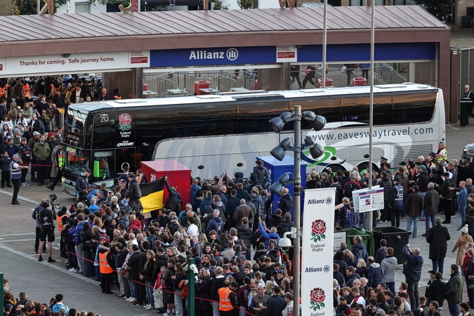 England team coach arrives during the Quilter Nations Series 2025 match England vs Fiji at Allianz Stadium, Twickenham, United Kingdom, 8th November 2025, Credit:Mark Cosgrove/News Images / Avalon