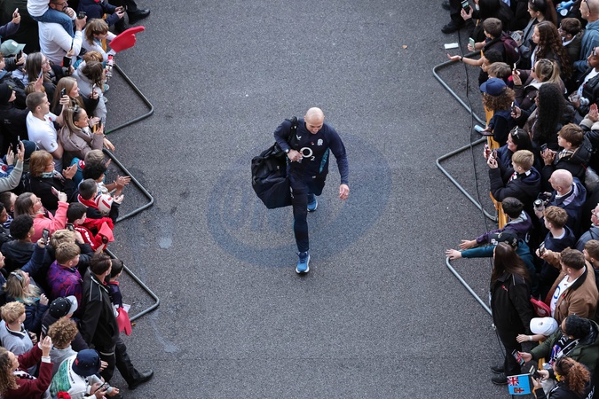 Steve Borthwick head coach of England is greeted buy the fans as he arrives during the Quilter Nations Series 2025 match England vs Fiji at Allianz Stadium, Twickenham, United Kingdom, 8th November 2025, Credit:Mark Cosgrove/News Images / Avalon