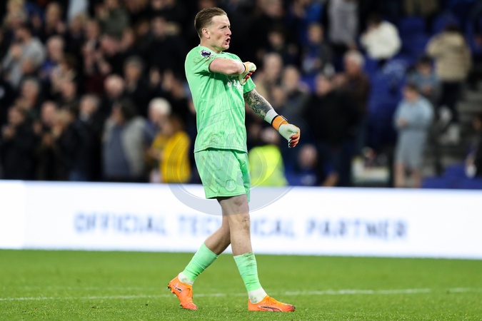 Jordan Pickford of Everton celebrates full time whistle during the Premier League match Everton vs Fulham at Hill Dickinson Stadium, Liverpool, United Kingdom, 8th November 2025, Credit:Jorge Horsted/News Images / Avalon