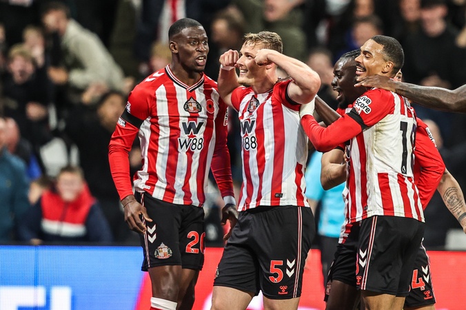 Daniel Ballard of Sunderland celebrates his goal to make it 1-0 during the Premier League match Sunderland vs Arsenal at Stadium Of Light, Sunderland, United Kingdom, 8th November 2025, Credit:Ae Cosgrove/News Images / Avalon