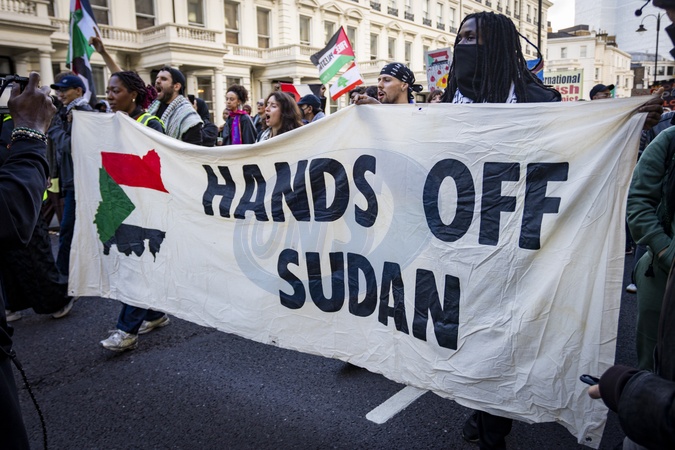 Sudanese activists and supporters gathered in Central London to protest against atrocities committed by the Rapid Support Forces (RSF) following their capture of Al Fashir from government forces. Demonstrators condemned the recent massacres and called for international intervention to stop the ongoing violence. Protesters waved Sudanese flags, chanted for peace and justice, and demanded accountability for war crimes committed in the Darfur region., Credit:Zak Irfan / Avalon