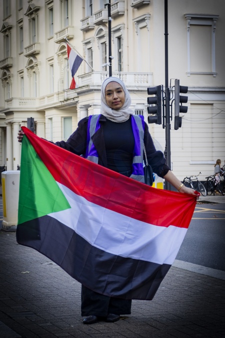 Sudanese activists and supporters gathered in Central London to protest against atrocities committed by the Rapid Support Forces (RSF) following their capture of Al Fashir from government forces. Demonstrators condemned the recent massacres and called for international intervention to stop the ongoing violence. Protesters waved Sudanese flags, chanted for peace and justice, and demanded accountability for war crimes committed in the Darfur region., Credit:Zak Irfan / Avalon