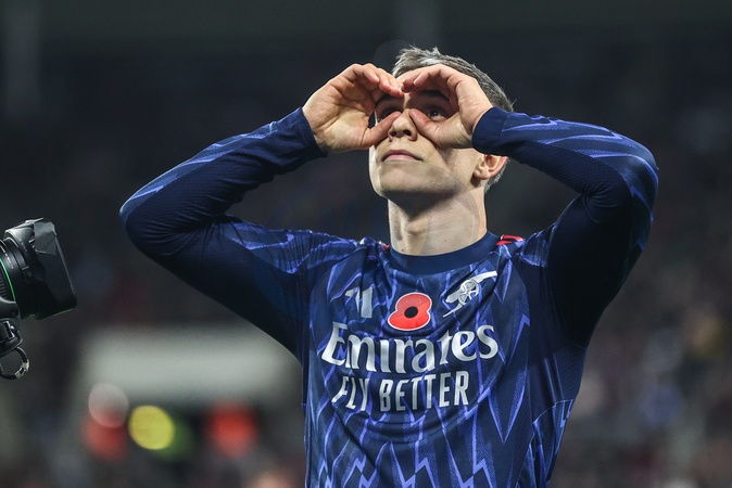 Leandro Trossard of Arsenal celebrates his goal to make it 1-2 during the Premier League match Sunderland vs Arsenal at Stadium Of Light, Sunderland, United Kingdom, 8th November 2025, Credit:Ae Cosgrove/News Images / Avalon