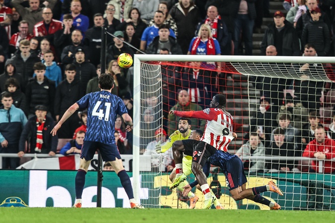 Marc Guiu of Sunderland scores to make it 2-2 during the Premier League match Sunderland vs Arsenal at Stadium Of Light, Sunderland, United Kingdom, 8th November 2025, Credit:Ae Cosgrove/News Images / Avalon