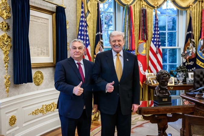 President Donald Trump and Hungarian Prime Minister Viktor Orban pose for a photo in the Oval Office, Friday, November 7, 2025., Credit:Daniel Torok / Avalon