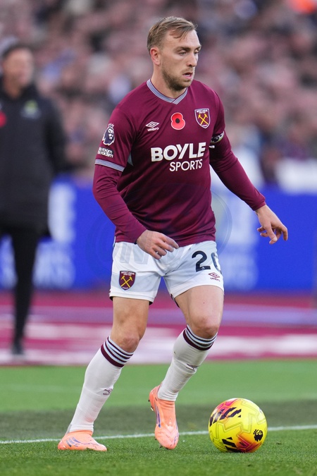 Jarrod Bowen of West Ham United on the ball during the Premier League match West Ham United vs Burnley at London Stadium, London, United Kingdom, 8th November 2025, Credit:Harvey Murphy/News Images / Avalon