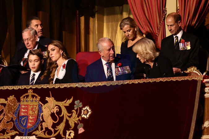 Britain's King Charles, Queen Camilla, Prince George, Catherine, Princess of Wales, Prince Edward, Duke of Edinburgh, Sophie, Duchess of Edinburgh, and Prince Richard, Duke of Gloucester, attend the Royal British Legion Festival of Remembrance, an annual event honouring military service members, which holds special significance in 2025 as it marks the 80th anniversary of the end of World War Two, at the Royal Albert Hall in London, Britain, November 8, 2025., Credit:Jack Taylor / Avalon
