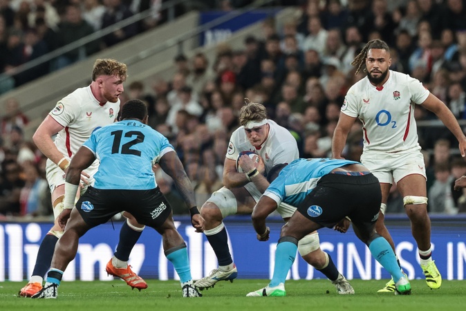 Alex Coles of England in action during the Quilter Nations Series 2025 match England vs Fiji at Allianz Stadium, Twickenham, United Kingdom, 8th November 2025, Credit:Mark Cosgrove/News Images / Avalon
