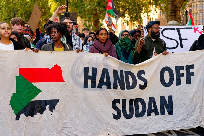 Saturday 8th November. Protest for Sudan. Stop the Genocide in Al-Fashir. London. The march mustered outside Gloucester Road Station, passed through Knightsbridge and ended in Berkeley Square., Credit:Aldo Ciarrocchi / Avalon