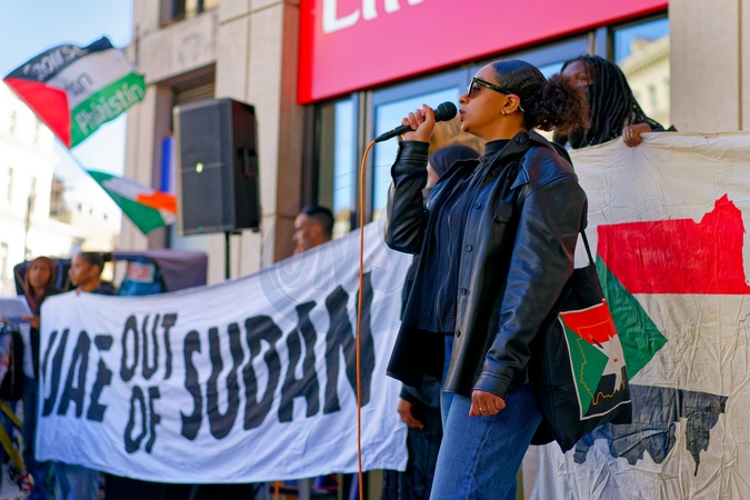 Saturday 8th November. Protest for Sudan. Stop the Genocide in Al-Fashir. London. The march mustered outside Gloucester Road Station, passed through Knightsbridge and ended in Berkeley Square., Credit:Aldo Ciarrocchi / Avalon
