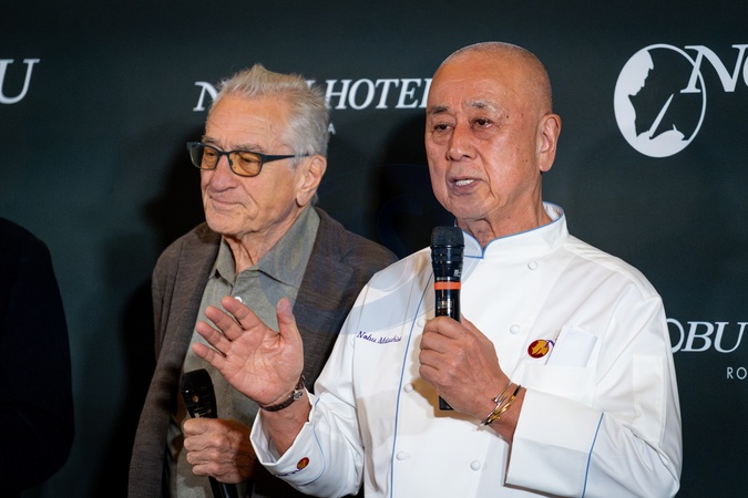 Robert De Niro and chef Nobu Matsuhisa attend the Sakè Ceremony for the opening of Nobu Hotel and Restaurant via Veneto in Rome, Italy on 06 November 2025, Credit:Stefano Costantino TTL / Avalon