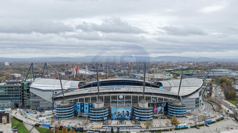 An aerial view of the Etihad Stadium ahead of the Premier League match Manchester City vs Liverpool at Etihad Stadium, Manchester, United Kingdom, 9th November 2025, Credit:Mark Cosgrove/News Images / Avalon