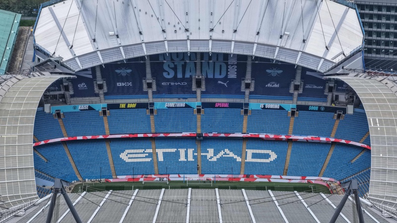An aerial view of the Etihad Stadium ahead of the Premier League match Manchester City vs Liverpool at Etihad Stadium, Manchester, United Kingdom, 9th November 2025, Credit:Mark Cosgrove/News Images / Avalon