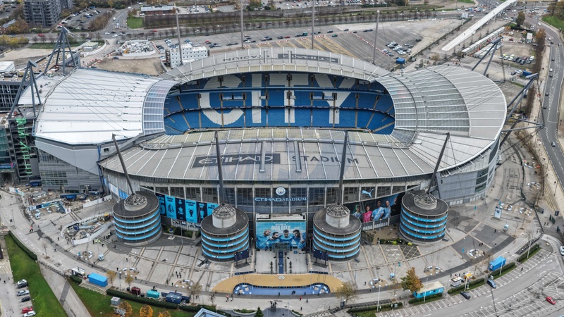 An aerial view of the Etihad Stadium ahead of the Premier League match Manchester City vs Liverpool at Etihad Stadium, Manchester, United Kingdom, 9th November 2025, Credit:Mark Cosgrove/News Images / Avalon