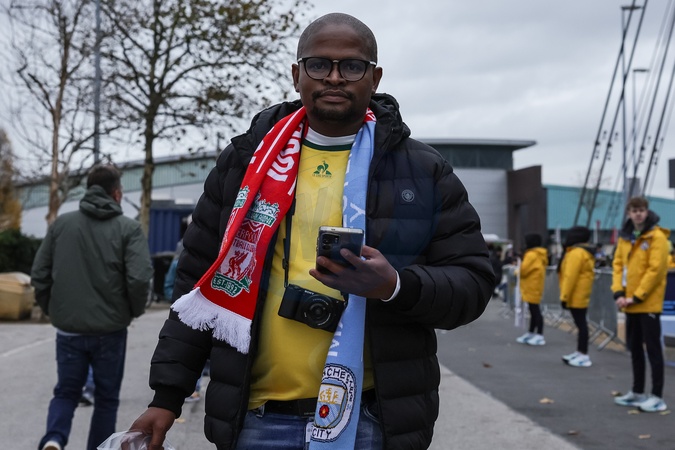 Fans make their way to the ground during the Premier League match Manchester City vs Liverpool at Etihad Stadium, Manchester, United Kingdom, 9th November 2025, Credit:Mark Cosgrove/News Images / Avalon