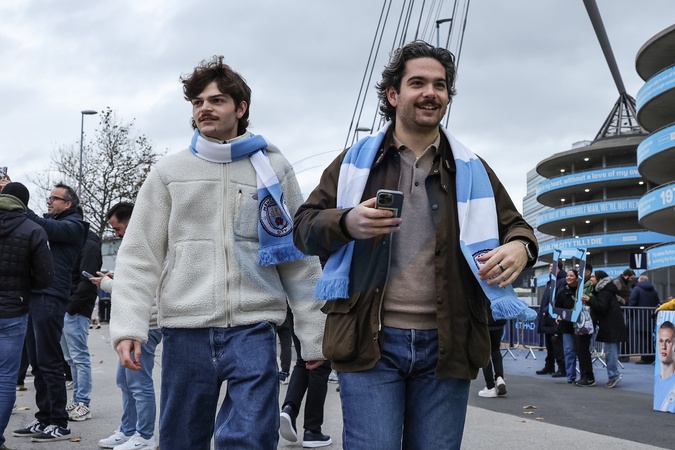 Man City fans make their way to the ground during the Premier League match Manchester City vs Liverpool at Etihad Stadium, Manchester, United Kingdom, 9th November 2025, Credit:Mark Cosgrove/News Images / Avalon