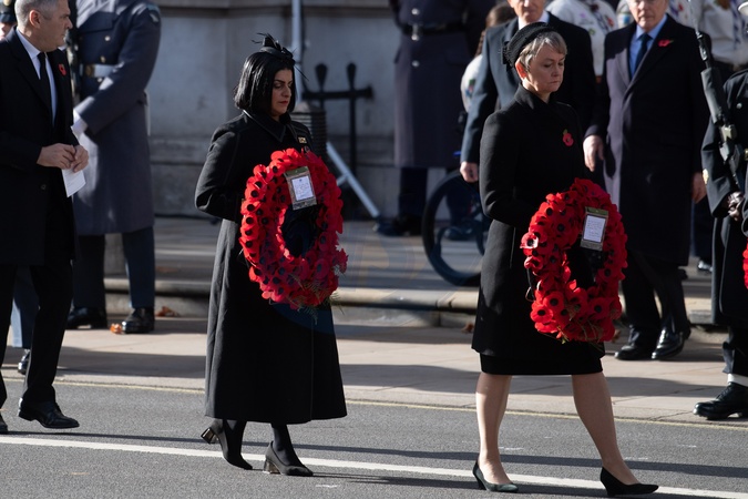 (L-R) - Shabana Mahmood - Secretary of State for the Home Department and Yvette Cooper - Secretary of State for Foreign, Commonwealth and Development Affairs attend a Remembrance Sunday Service in Whitehall in London, England, UK on Sunday 9 November, 2025 to commemorate the contribution of British and Commonwealth military and civilian servicemen and women in the two World Wars and later conflict., Credit:Justin Ng / Avalon