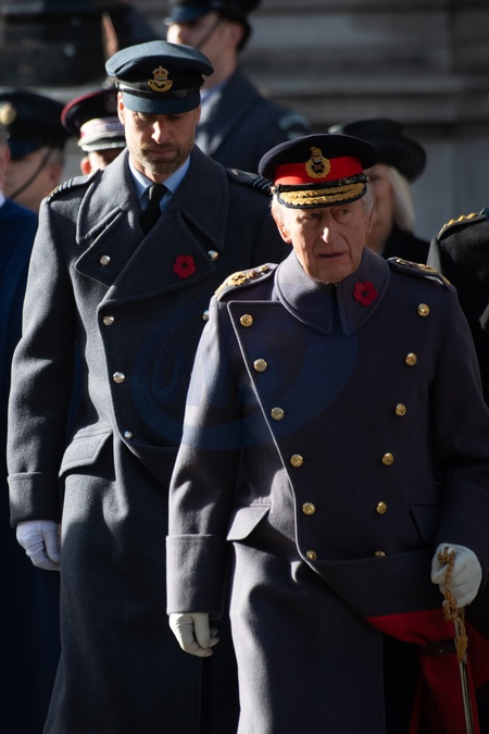 (L-R) - Prince William - The Prince of Wales and King Charles III attend a Remembrance Sunday Service in Whitehall in London, England, UK on Sunday 9 November, 2025 to commemorate the contribution of British and Commonwealth military and civilian servicemen and women in the two World Wars and later conflict., Credit:Justin Ng / Avalon