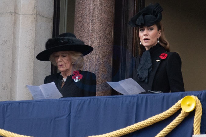 Queen Camilla and Princess Catherine - The Princess of Wales attend a Remembrance Sunday Service in Whitehall in London, England, UK on Sunday 9 November, 2025 to commemorate the contribution of British and Commonwealth military and civilian servicemen and women in the two World Wars and later conflict., Credit:Justin Ng / Avalon
