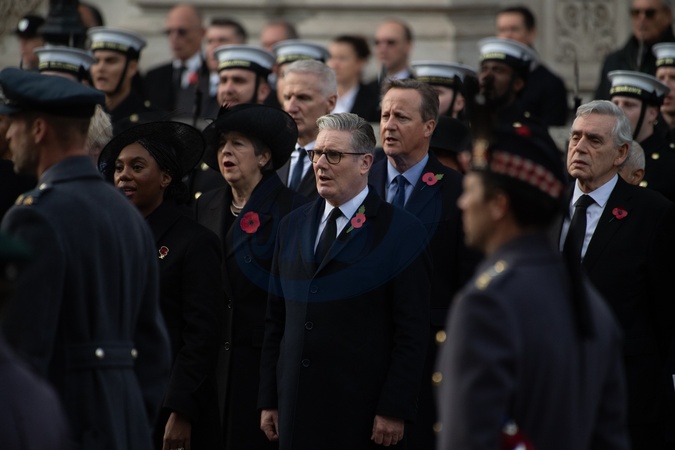 (L-R) - Former Prime Minister Theresa May, British Prime Minister Sir Keir Starmer and Former Prime Minister David Cameron attend a Remembrance Sunday Service in Whitehall in London, England, UK on Sunday 9 November, 2025 to commemorate the contribution of British and Commonwealth military and civilian servicemen and women in the two World Wars and later conflict., Credit:Justin Ng / Avalon