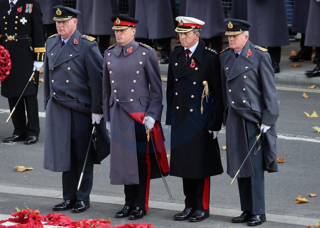 LONDON, ENGLAND - NOVEMBER 09: General Sir Charles Roland Walker (2L) and Sir Richard Knighton (R) lay wreaths during the 2025 National Service Of Remembrance at The Cenotaph on November 09, 2025 in London, England. Every year, members of the British Royal Family join politicians, veterans and members of the public to remember those who have died in combat., Credit:Chris Jackson / Avalon