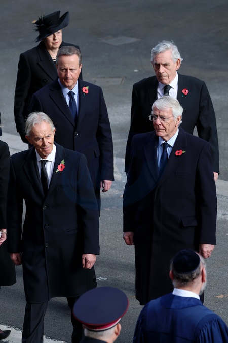 LONDON, ENGLAND - NOVEMBER 09: Former Prime Ministers Sir Tony Blair, Theresa May, Lord David Cameron, John Major and Gordon Brown during the 2025 National Service Of Remembrance at The Cenotaph on November 09, 2025 in London, England. Every year, members of the British Royal Family join politicians, veterans and members of the public to remember those who have died in combat., Credit:Chris Jackson / Avalon