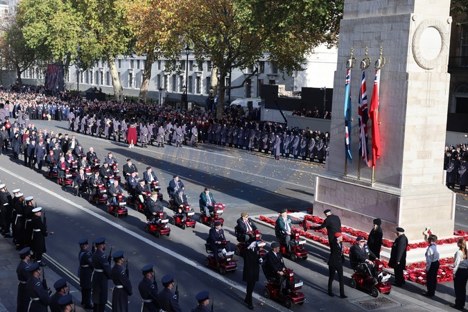 LONDON, ENGLAND - NOVEMBER 09: A general view of the veterans' parade during the 2025 National Service Of Remembrance at The Cenotaph on November 09, 2025 in London, England. Every year, members of the British Royal Family join politicians, veterans and members of the public to remember those who have died in combat., Credit:Chris Jackson / Avalon