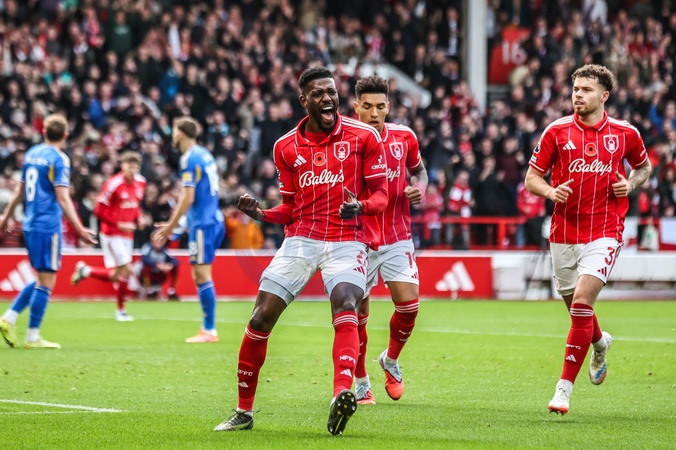Ibrahim Sangaré of Nottingham Forest celebrates his goal to make it 1-1 during the Premier League match Nottingham Forest vs Leeds United at City Ground, Nottingham, United Kingdom, 9th November 2025, Credit:Ae Cosgrove/News Images / Avalon