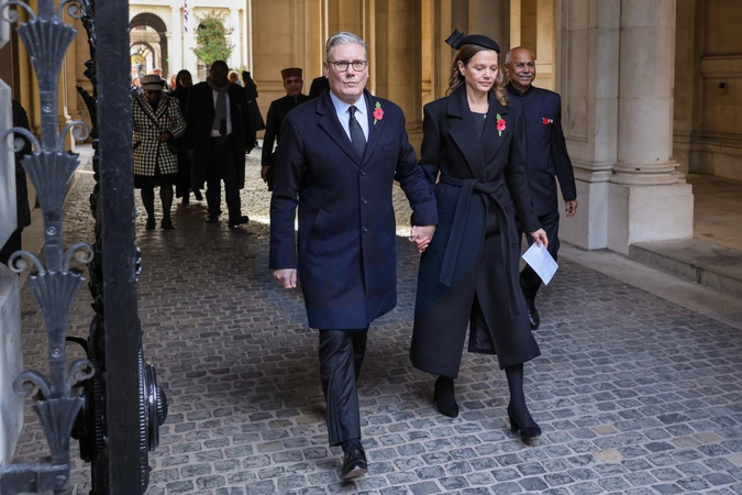 Prime Minister Sir Keir Starmer and wife Lady Starmer on Remembrance Sunday in Downing Street, London, UK