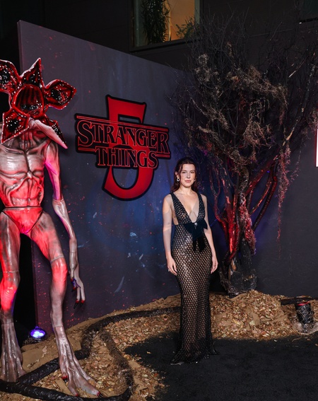 HOLLYWOOD, LOS ANGELES, CALIFORNIA, USA - NOVEMBER 08: British actress and producer Millie Bobby Brown arrives at the Netflix FYSEE: The Fall Edit - 'Stranger Things' Season 5 FYC (For Your Consideration) Event held at the Netflix Tudum Theater on November 8, 2025 in Hollywood, Los Angeles, California, United States., Credit:Xavier Collin / Avalon