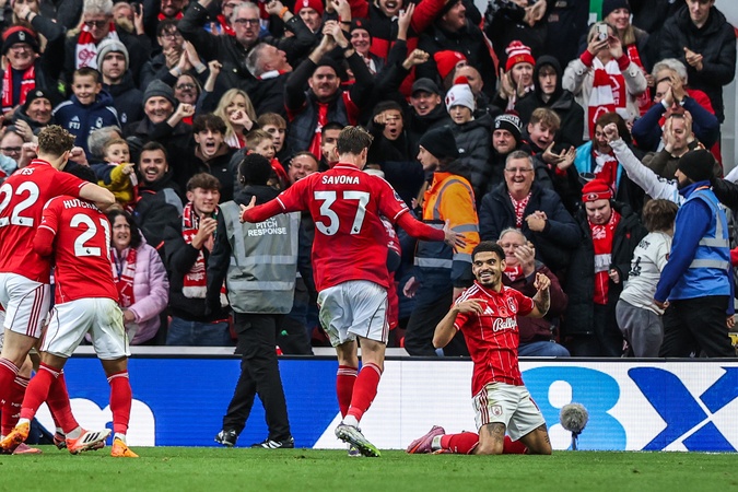 Morgan Gibbs-White of Nottingham Forest celebrates his goal to make it 2-1 during the Premier League match Nottingham Forest vs Leeds United at City Ground, Nottingham, United Kingdom, 9th November 2025, Credit:Ae Cosgrove/News Images / Avalon
