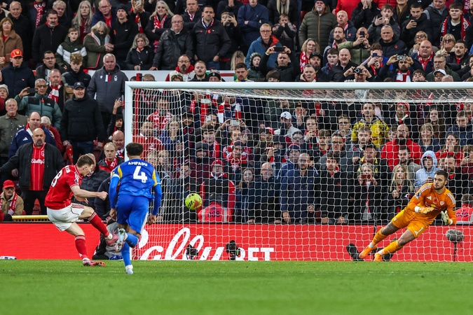 Elliot Anderson of Nottingham Forest scores a penalty to make it 3-1 during the Premier League match Nottingham Forest vs Leeds United at City Ground, Nottingham, United Kingdom, 9th November 2025, Credit:Ae Cosgrove/News Images / Avalon