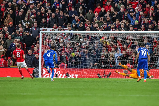 Elliot Anderson of Nottingham Forest scores a penalty to make it 3-1 during the Premier League match Nottingham Forest vs Leeds United at City Ground, Nottingham, United Kingdom, 9th November 2025, Credit:Ae Cosgrove/News Images / Avalon