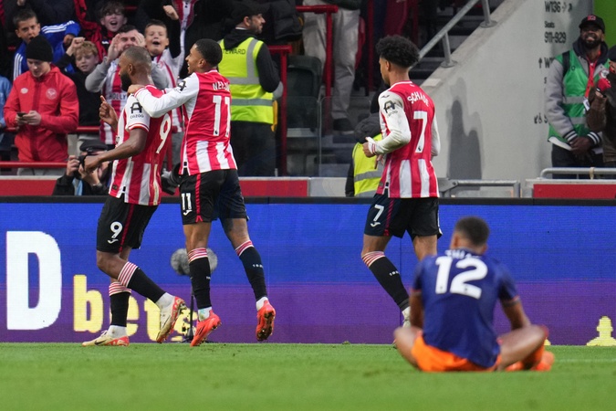 Brentford players celebrate third during the Premier League match Brentford vs Newcastle United at The Gtech Community Stadium, London, United Kingdom, 9th November 2025, Credit:Harvey Murphy/News Images / Avalon