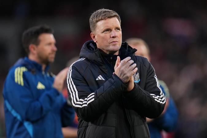 Eddie Howe manager of Newcastle United applauds away support during the Premier League match Brentford vs Newcastle United at The Gtech Community Stadium, London, United Kingdom, 9th November 2025, Credit:Harvey Murphy/News Images / Avalon