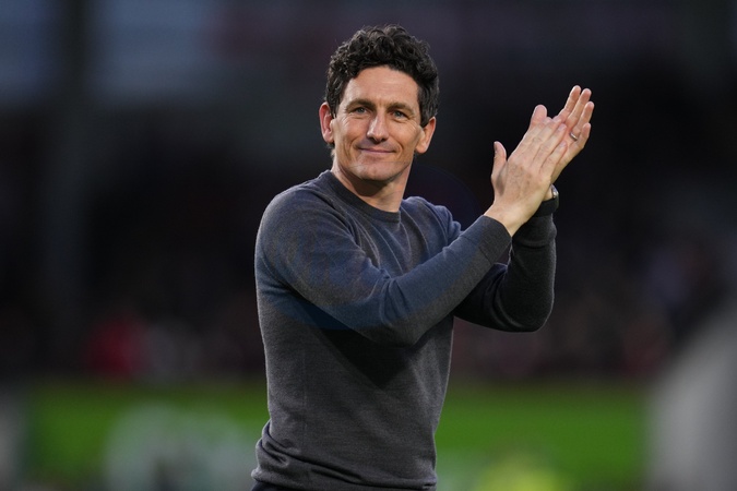 Keith Andrews manager of Brentford applauds home support at full time during the Premier League match Brentford vs Newcastle United at The Gtech Community Stadium, London, United Kingdom, 9th November 2025, Credit:Harvey Murphy/News Images / Avalon