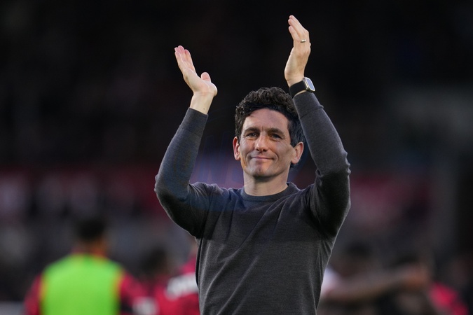 Keith Andrews manager of Brentford applauds home support during the Premier League match Brentford vs Newcastle United at The Gtech Community Stadium, London, United Kingdom, 9th November 2025, Credit:Harvey Murphy/News Images / Avalon